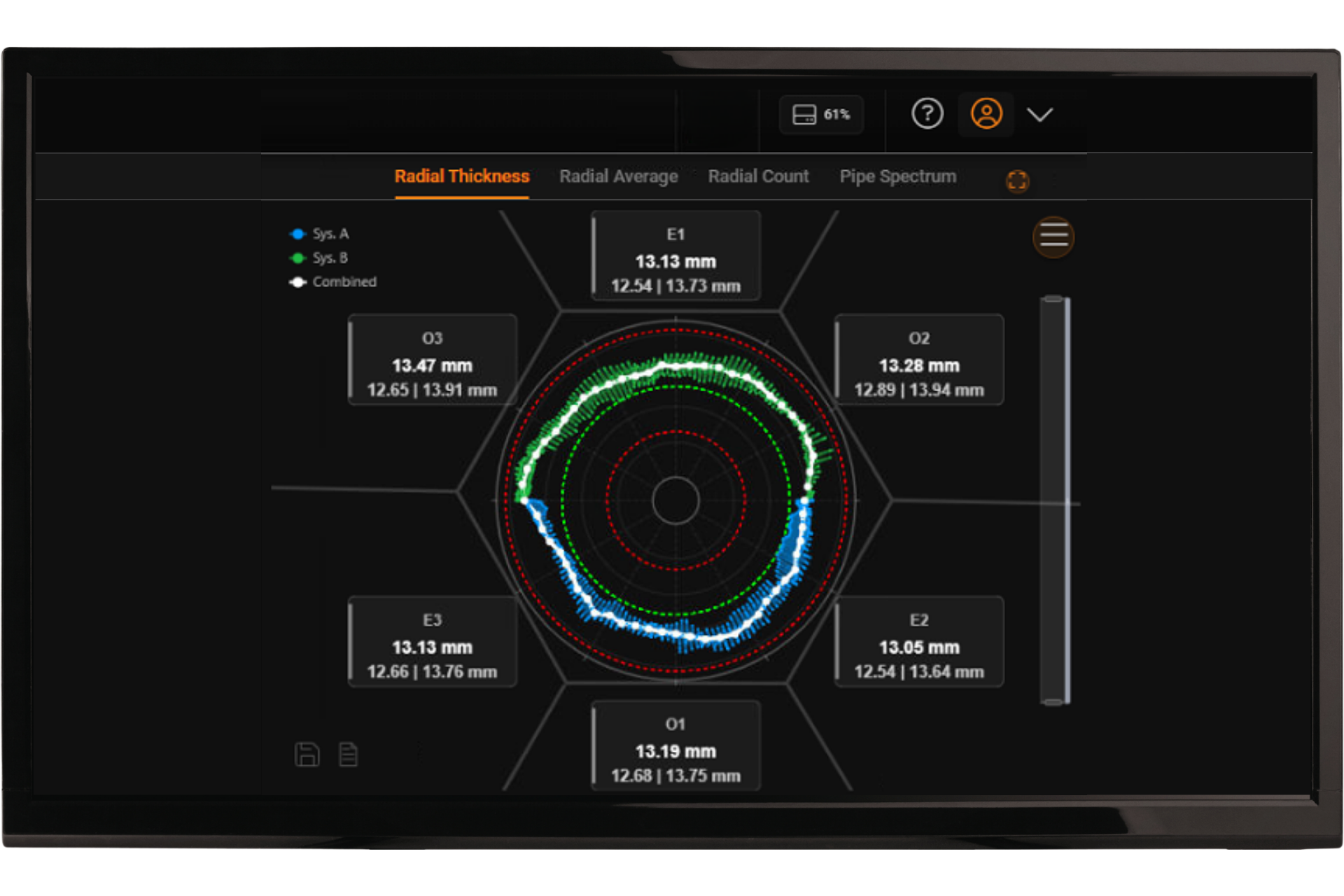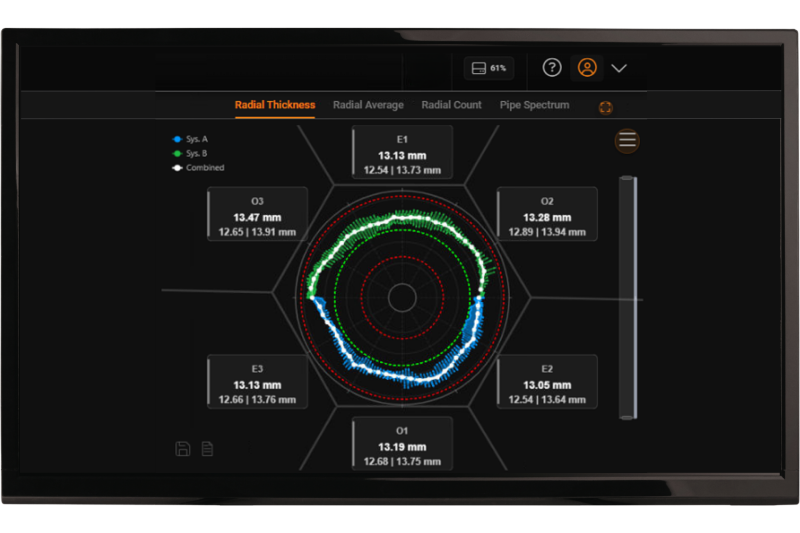 This full reconstruction provides highly reliable measurements of minimum, average, and maximum wall thickness across the entire pipe, helping you better understand and control your production.