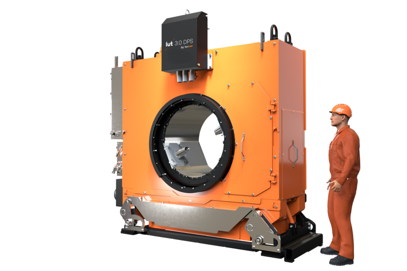 Finding space to squeeze in new equipment on a hot seamless tube line is always a challenge. To address this issue, only the Lut compact positioning device, equipped with an inspection probe, is installed in close proximity to the mill. The other components, such as the electronics and support systems, are installed in a clean room up to 60m/200ft. away from the production line.