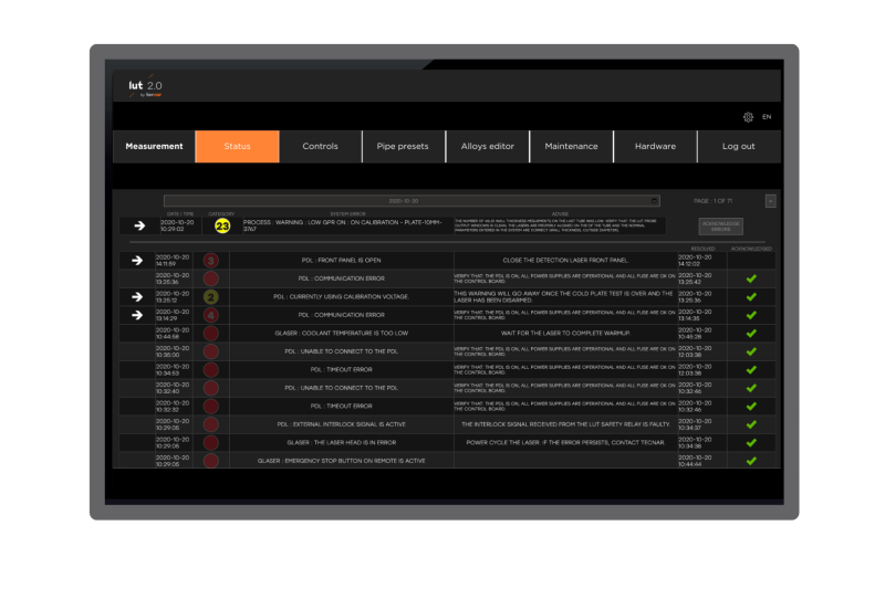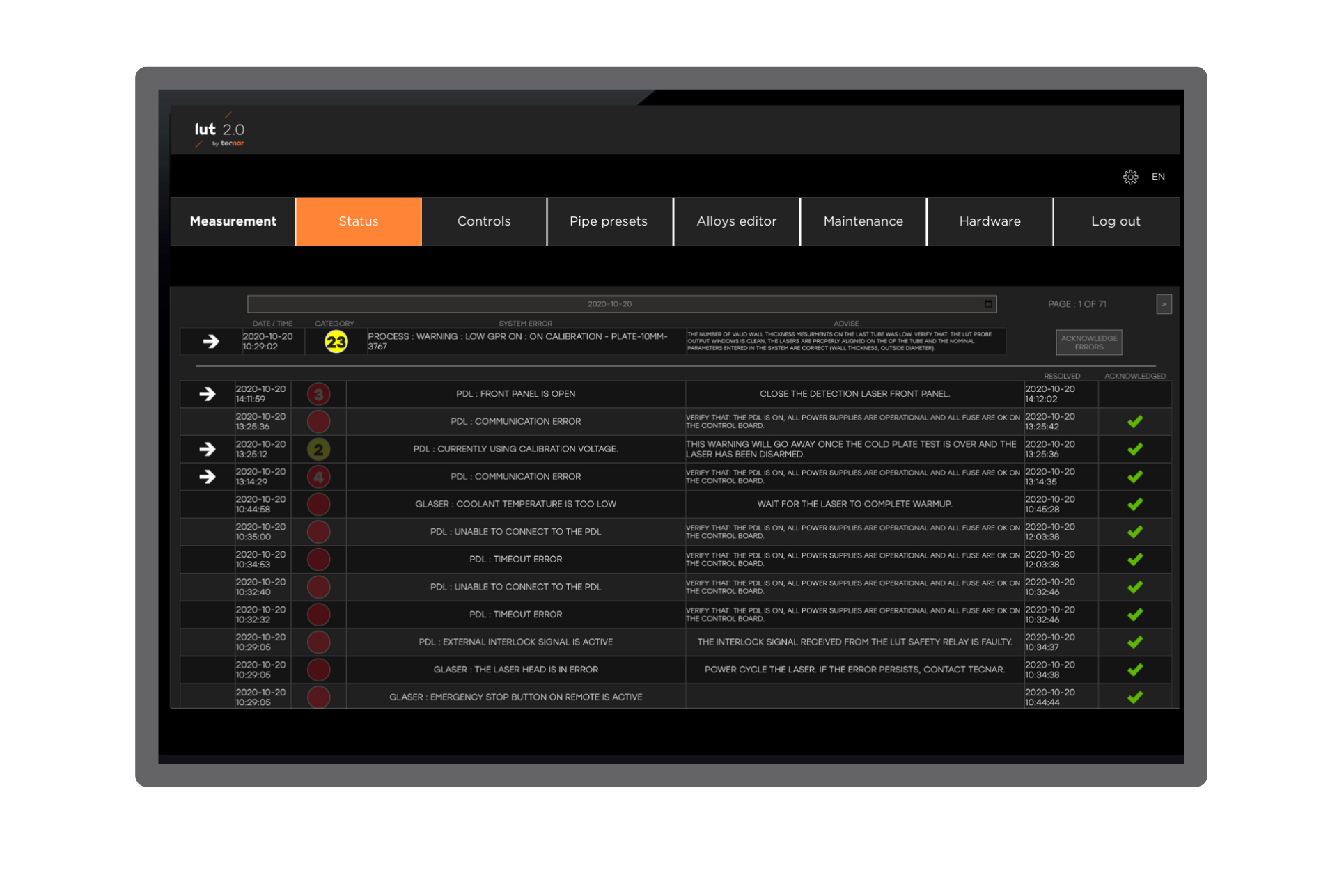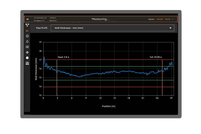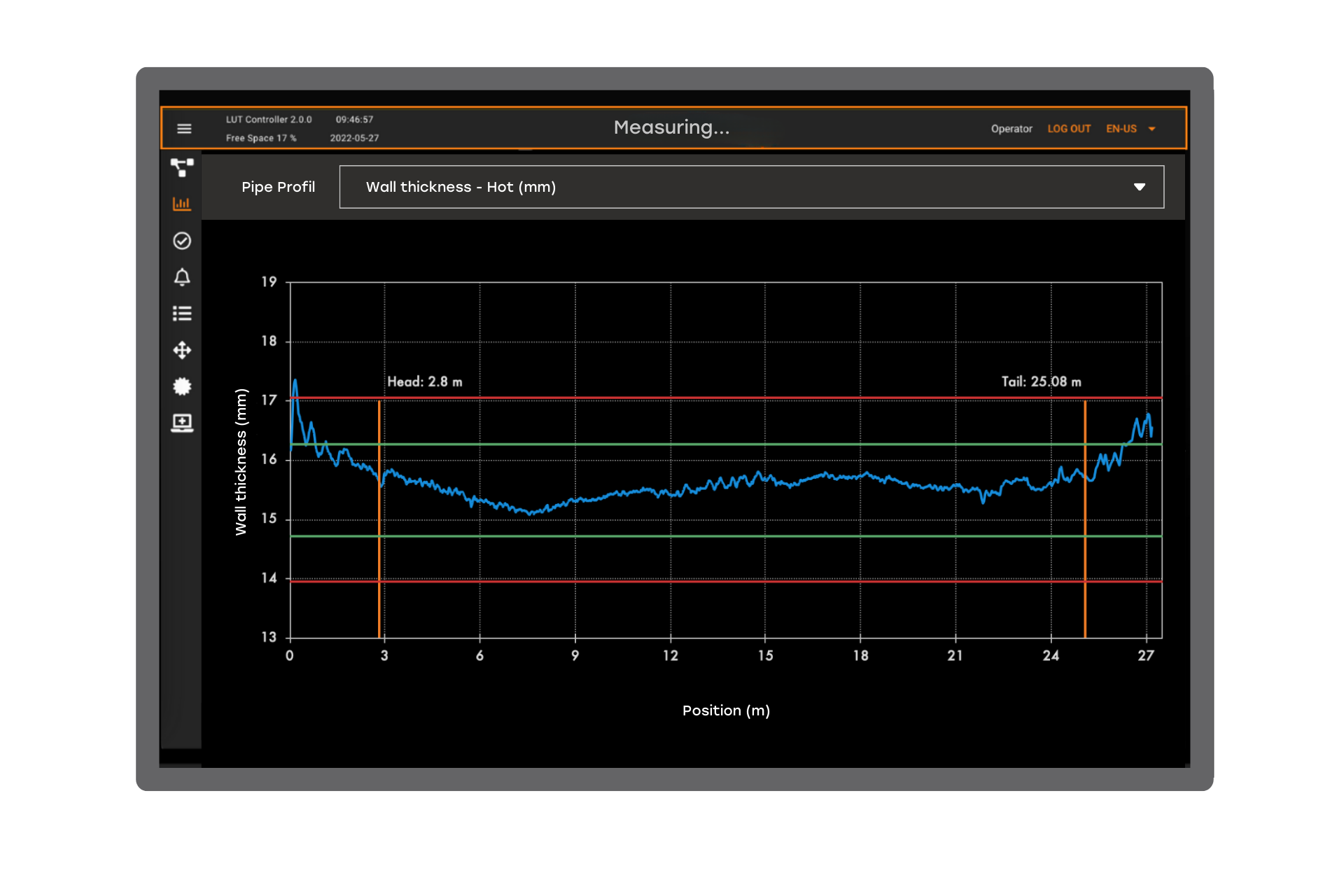 Through real-time communication with the plant’s automation system, the Lut 2.0 constantly monitors the tubes’ nominal characteristics. If the Lut detects any deviations from the setpoint, mill operators are automatically notified of the issue.